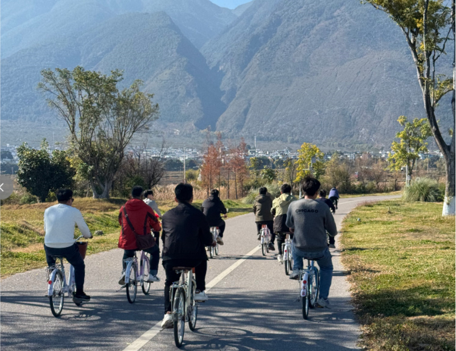 大理S湾的风掠过耳畔时,骑行队伍里的身影格外动人。出发前,有伙伴主动帮忙检查自行车车况、调整座椅高度;骑行中,体力好的伙伴会放慢节奏陪伴体力稍弱的伙伴,有人提前探路提醒路况,有人随时准备好饮用水和小零食;这一路的骑行,没有“孤军奋战”,只有“结伴同行”。